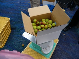 完熟梅のもぎ採り体験です。   自分が採った梅を計ります。