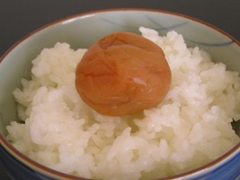 お米の中に梅干し(白干し梅又はうす塩味)を入れて炊くと梅干しご飯!!