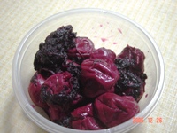 栃木県のMさんから,しそ漬け梅・チョロギ・それから夏野菜のミックス漬け(キュウリ・茄子・白ウリ・マクワウリ)