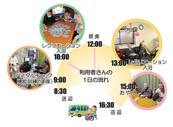 レクリエーションのほか、食事や入浴といった生活援助サービスを合わせて受けることがで