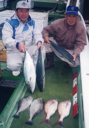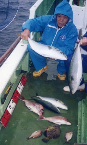 マダイ、メジロ、ハマチ、丸ハゲ、日の岬沖。