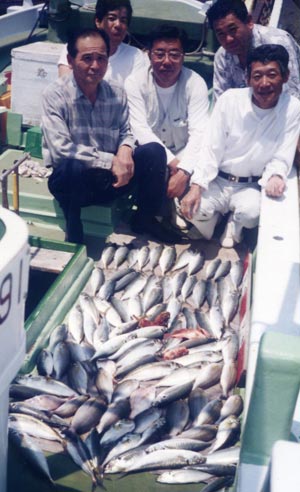 グループの釣果。釣場、関電沖。
