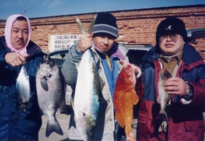 1999年1月2日、石田氏、娘夫婦の釣果、