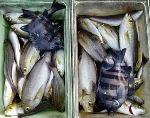 サンバソウ30糎3匹、ヘダイ35糎2匹、