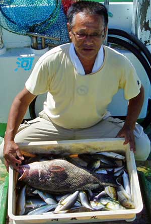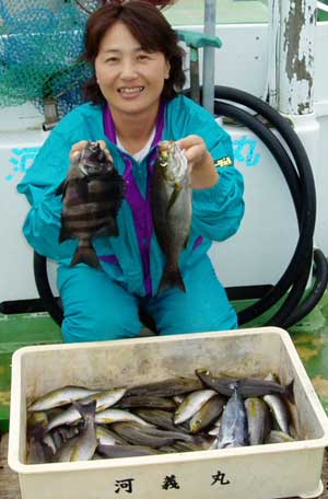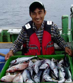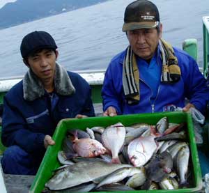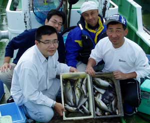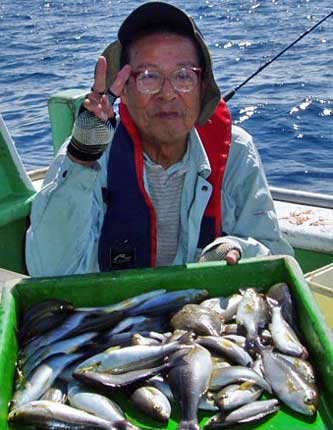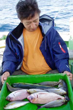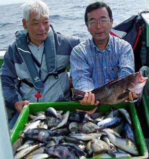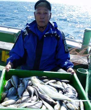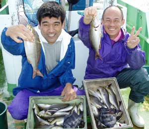 シオ40糎2匹、タイ40糎1匹、マアジ30糎2匹、
