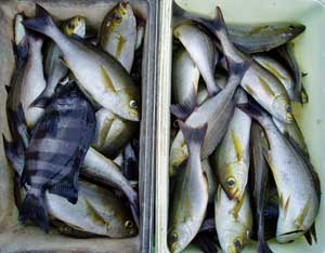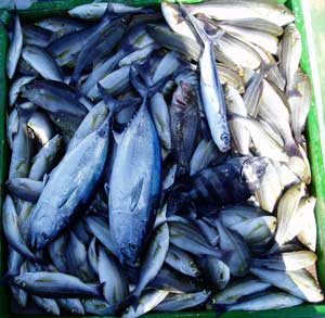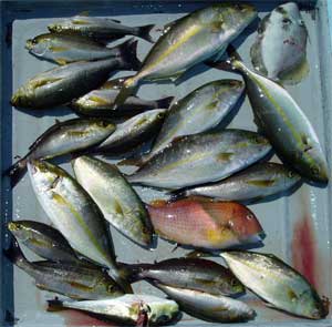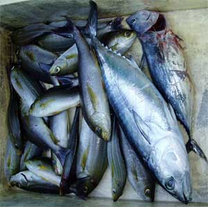サンバソウ30糎1匹、ソウダカツオ多数、