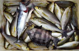 イサギ、カンパチ、ムロアジ、マルサバ、や