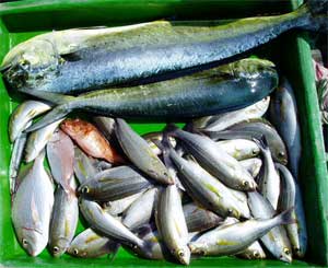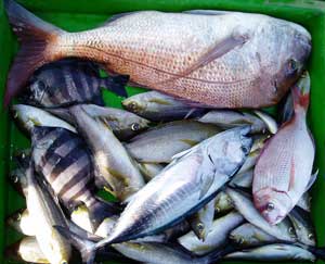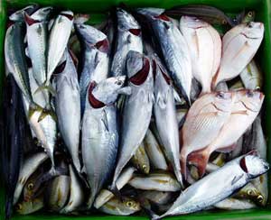 マアジ25糎8匹、タイ25〜40糎2匹、シイラ2匹、