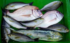 イサギ、カンパチ、チダイ、ヘダイ、マアジ、