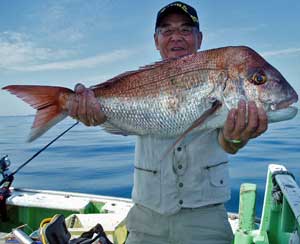 タイ30〜70糎3匹、イシダイ30糎2匹、