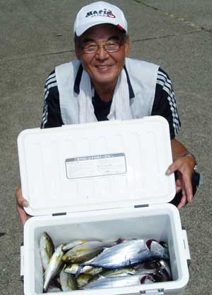 本カツオ50糎2匹、ムロアジ30糎2匹、