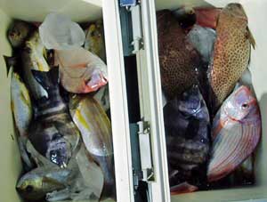 鯛40糎2匹、ハタ45〜50糎2匹、石鯛35糎2匹、