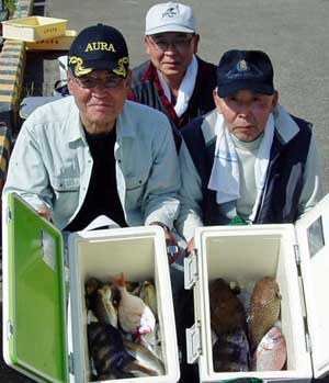 タイ25〜40糎4匹、ハゲ25〜50糎2匹、