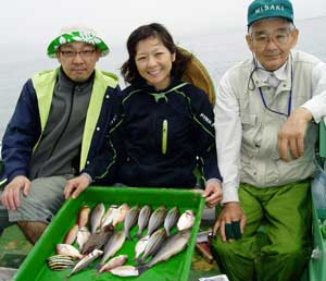 マアジ27糎7匹、タイ25糎6匹、ハギ25糎1匹、