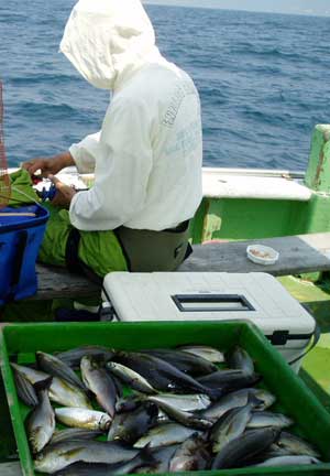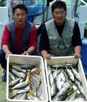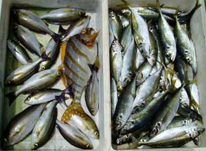 ヒラアジ27〜40糎50匹、タカノハダイ50糎1匹、