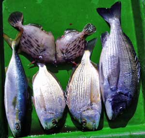 マアジ25〜38糎5匹、チヌ45糎1匹、タイ2匹、