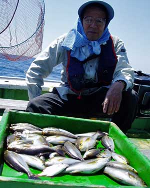 マアジ25糎15匹、コダイ25糎2匹、