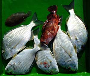 イサギ、オオモンハタ、コダイ、マアジ、ベラ、