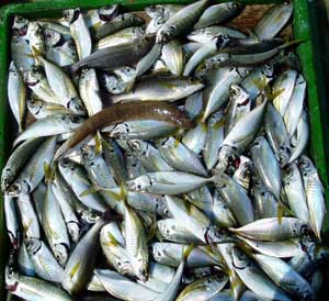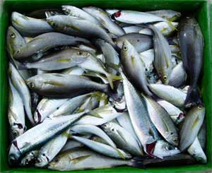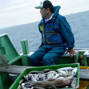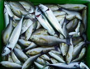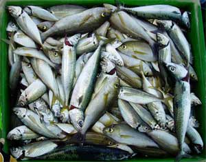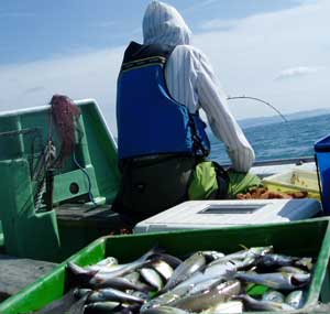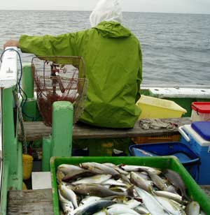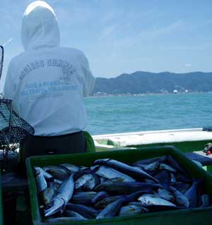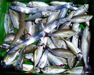 アジ20〜30糎100匹、サバ45糎10匹、