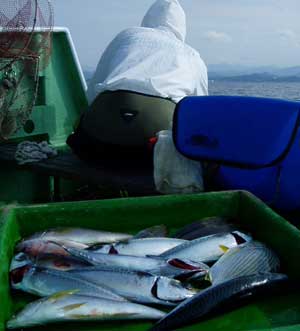 イサギ25〜30糎2匹、ハマチ45糎1匹、スマ1匹