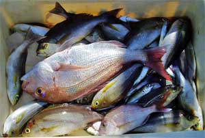 アジ20〜30糎30匹、タイ28〜50糎2匹、