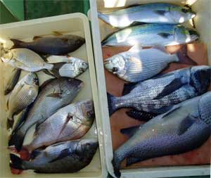 小タイ25糎5匹、ヘダイ32糎1匹、他、