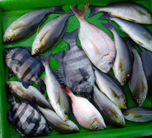 タイ25〜30糎10匹、イサギ30糎4匹、