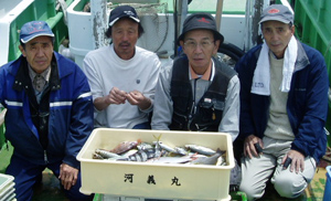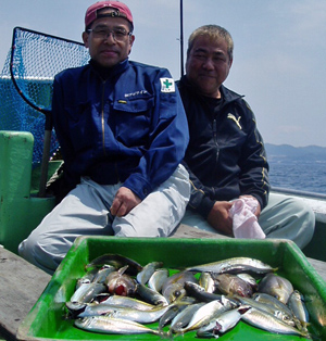 アジ22〜30糎30匹、タイ25糎5匹、
