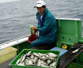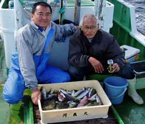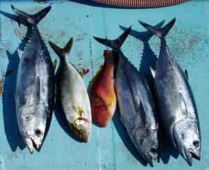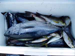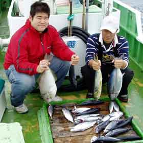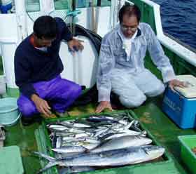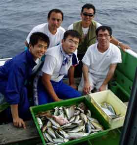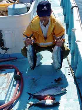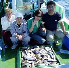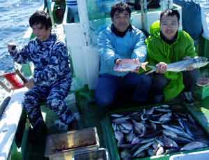 ツムブリ60糎2匹、スマカツオ5匹、メンドリ1匹、