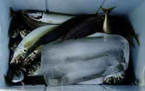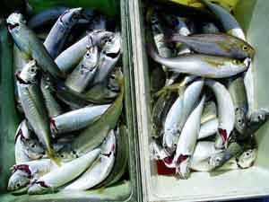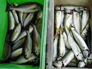 マルアジ25〜35糎50匹、サバ35糎3匹、