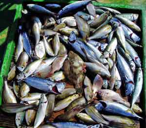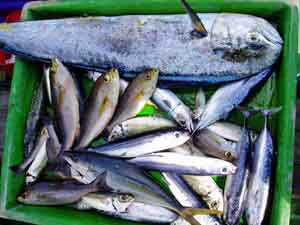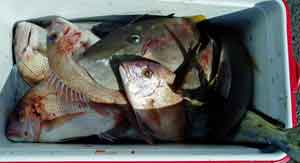 チダイ30糎1匹、マルアジ25〜35糎30匹、シイラ