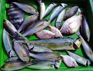 イサギ、鯛、カワハギ、小アジ、ムロアジ、