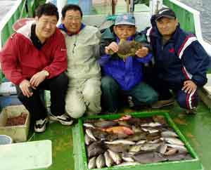 マダイ25〜30糎4匹、ウマヅラハゲ40糎1匹、