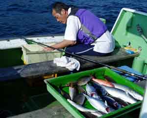 イサギ、鯛、カワハギ、アジ、サバフグなど釣る。