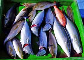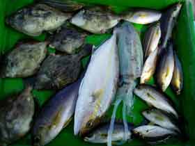 イサギ、タイ、アオリイカ、スマカツオ、小アジ