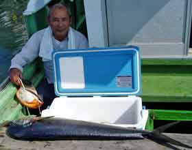 ウスバハゲ45糎1匹、ソウダカツオ40匹、