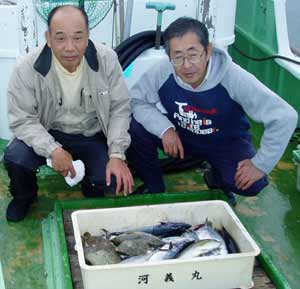 カワハギ20糎3匹、平丸ソウダカツオ20匹、ガシラ
