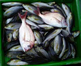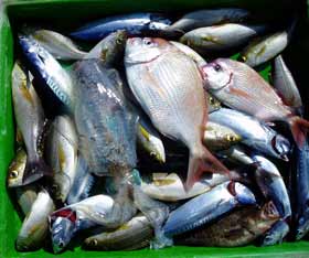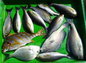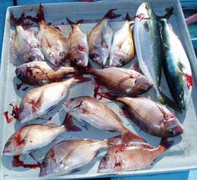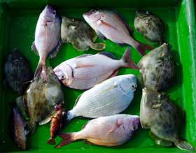 マダイ、マルハゲ、ヘダイ、ソウダカツオ、ベラ
