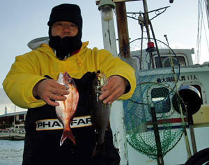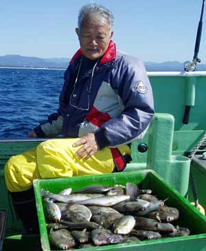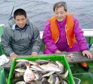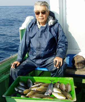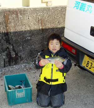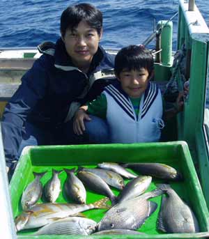 釣人、貝塚市都築氏と孫、翔君の釣果。