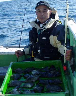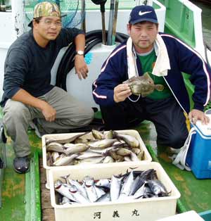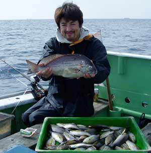 コロダイ50糎1匹、カワハギ25糎1匹。