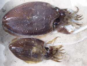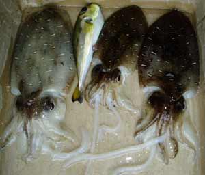 モンゴウイカ3匹、サバフグ1匹釣って帰る