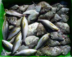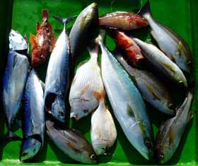オオモンハタ30糎1匹、ソウダカツオ20匹、