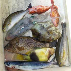 イサギ、コロダイ、マルハゲと青物、イカなどを