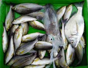 チダイ35〜42糎2匹、アオリイカ胴長35糎1匹、