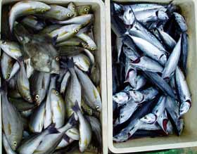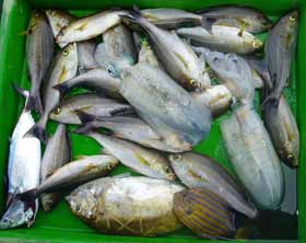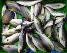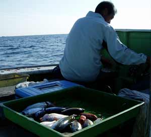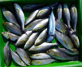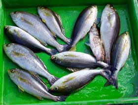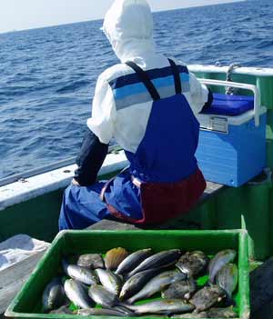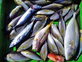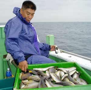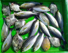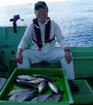 マル,ヒラ、ソウダ50糎8匹、ツバメウオ1匹、
