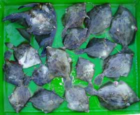 カワハギ22〜28糎20匹ウスバハギ40〜45糎3匹、