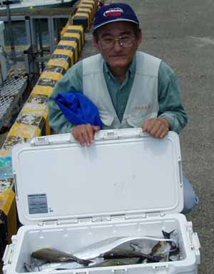 ハマチ60糎1匹、チダイ30〜38糎2匹、スマカツオ