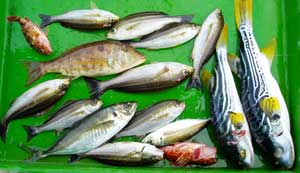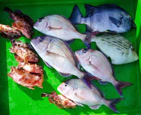 イサギ、マアジ、フエダイ、ガシラ、シマフグ