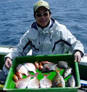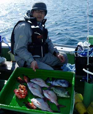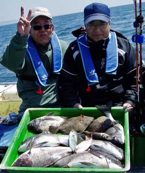 マダイ、チダイ35〜38糎ウマヅラハゲ40糎1匹、