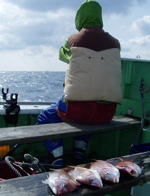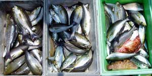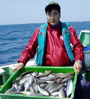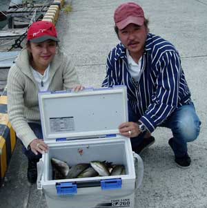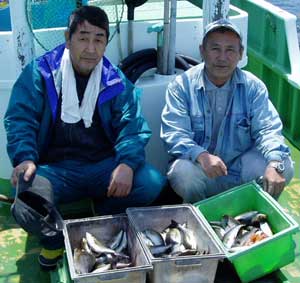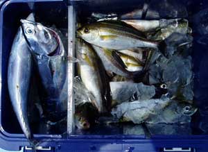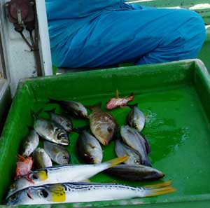 ソウダカツオ50糎2匹、ガシラ1匹、ベラ1匹、
